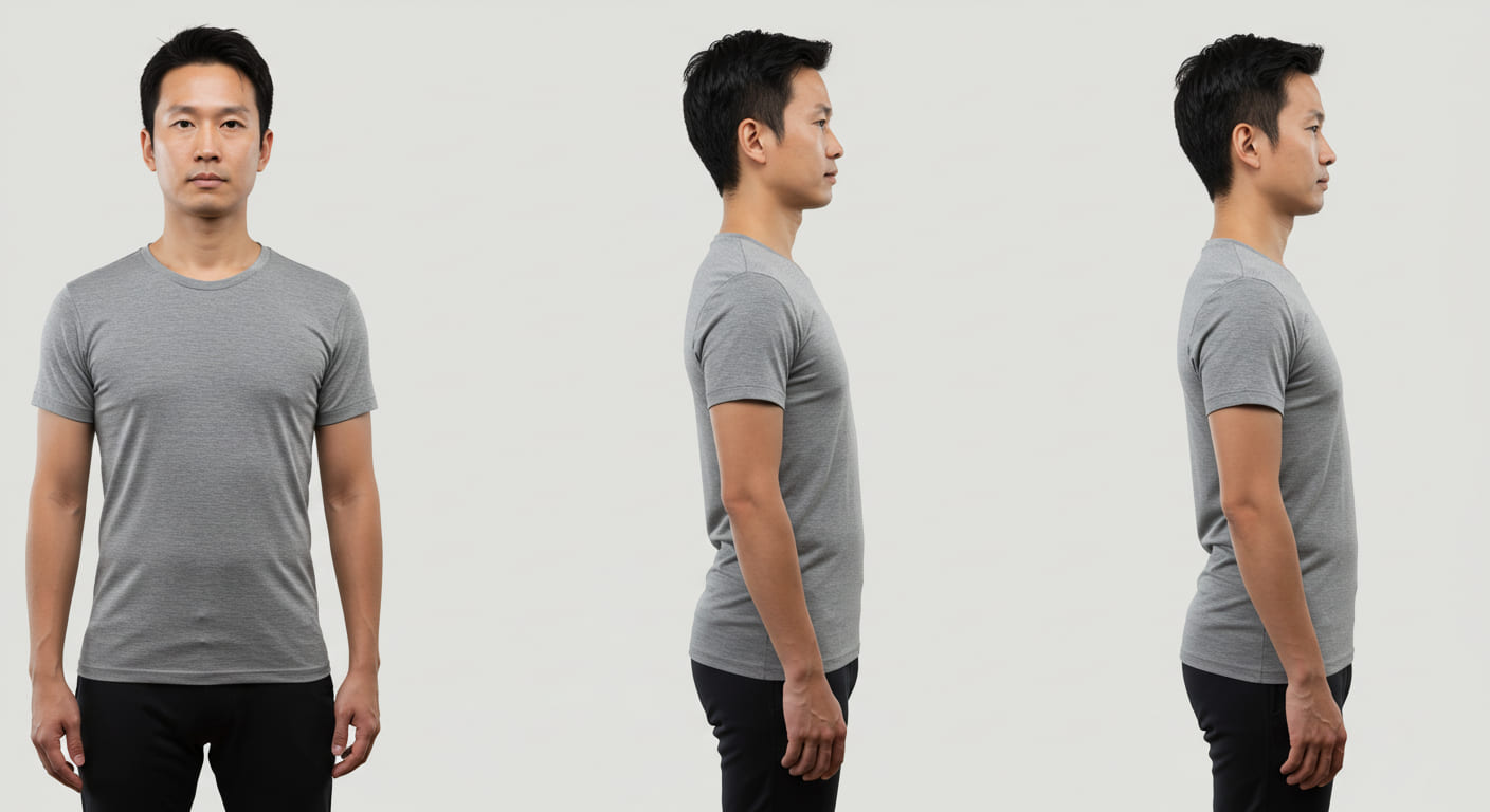 - 사진 테스트: 옆모습을 찍어 귀-어깨-엉덩이가 일직선이 되는지 확인합니다. 일직선이 아니라면 거북목일 가능성이 높습니다.