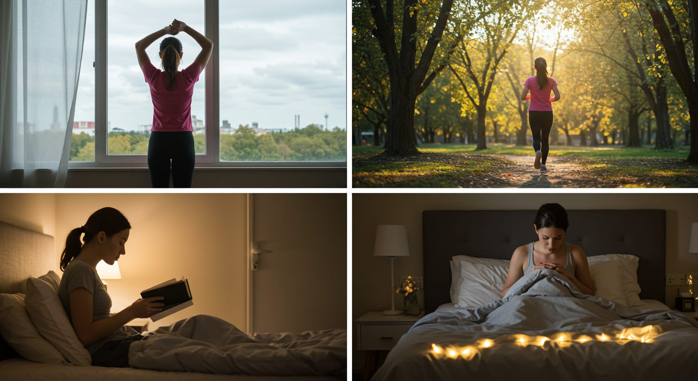 규칙적인 운동은 수면의 질을 향상시키지만, 취침 2-3시간 전에는 격렬한 운동을 피하세요. 오전 중 자연광을 충분히 쬐는 것도 생체 리듬 조절에 도움이 됩니다. 가능하다면 낮잠은 15-20분 정도로 짧게, 오후 3시 이전에 취하는 것이 좋습니다.