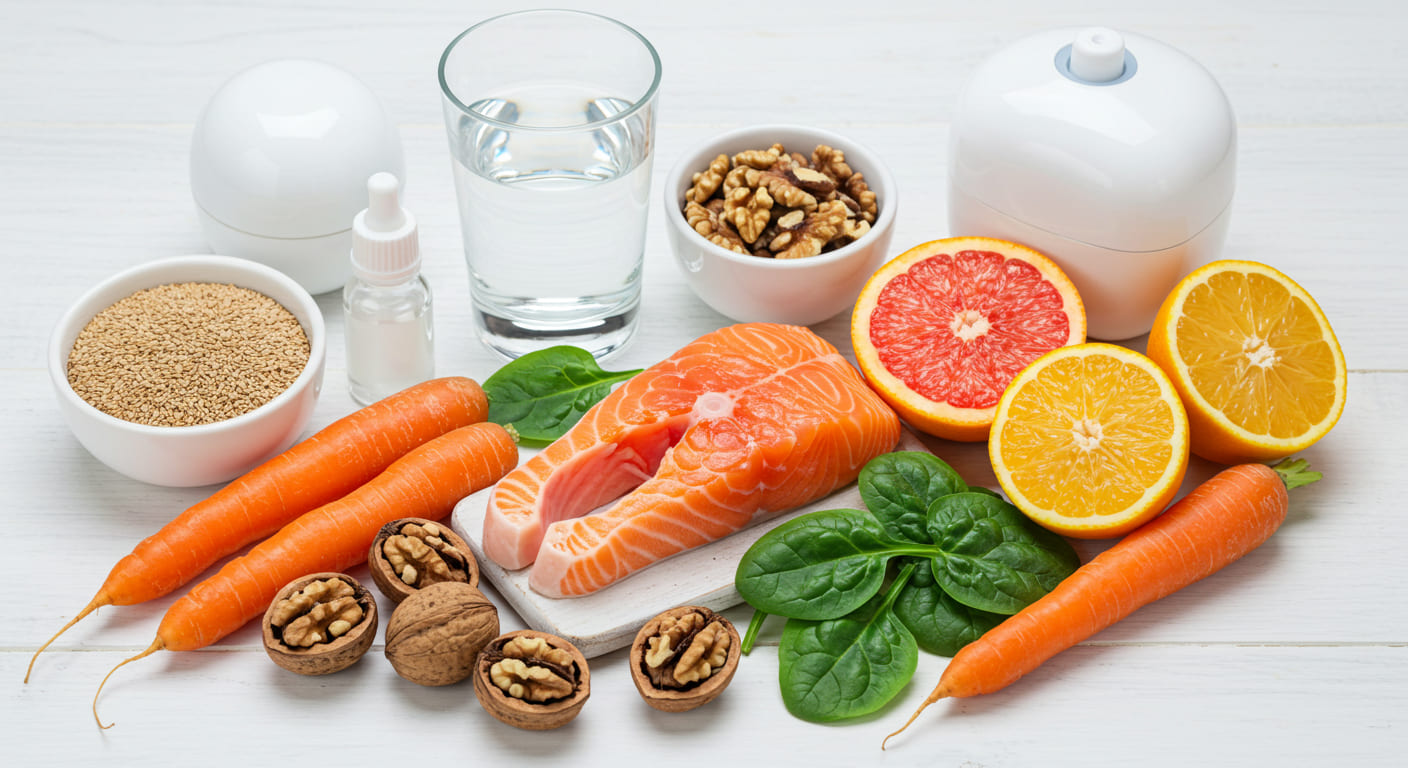 - 균형 잡힌 식이: 오메가-3 지방산이 풍부한 식품(연어, 고등어, 아마씨 등)과 비타민 A가 풍부한 식품(당근, 시금치, 호박 등)이 눈 건강에 도움이 됩니다.