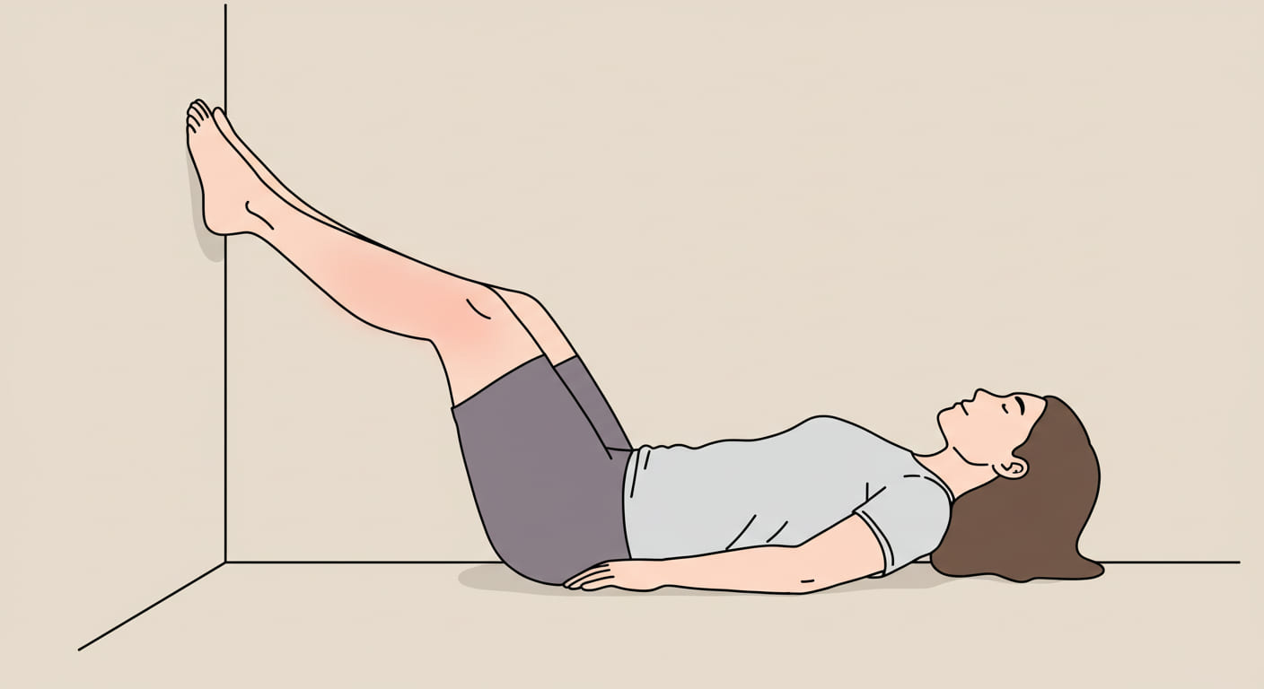 - 누워서 다리를 심장보다 높게 올리기 (15-20분) - 벽에 다리 기대기 운동 - 취침 시 다리 밑에 베개 받치기