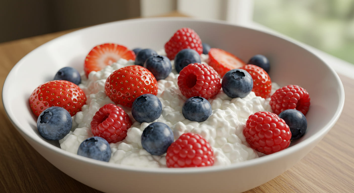 코티지 치즈는 단백질 함량이 매우 높은 유제품으로, 특히 잠자리에 들기 전 천천히 소화되는 카제인 단백질을 섭취하기에 좋습니다. 늦은 저녁이나 야식 대용으로 훌륭합니다.