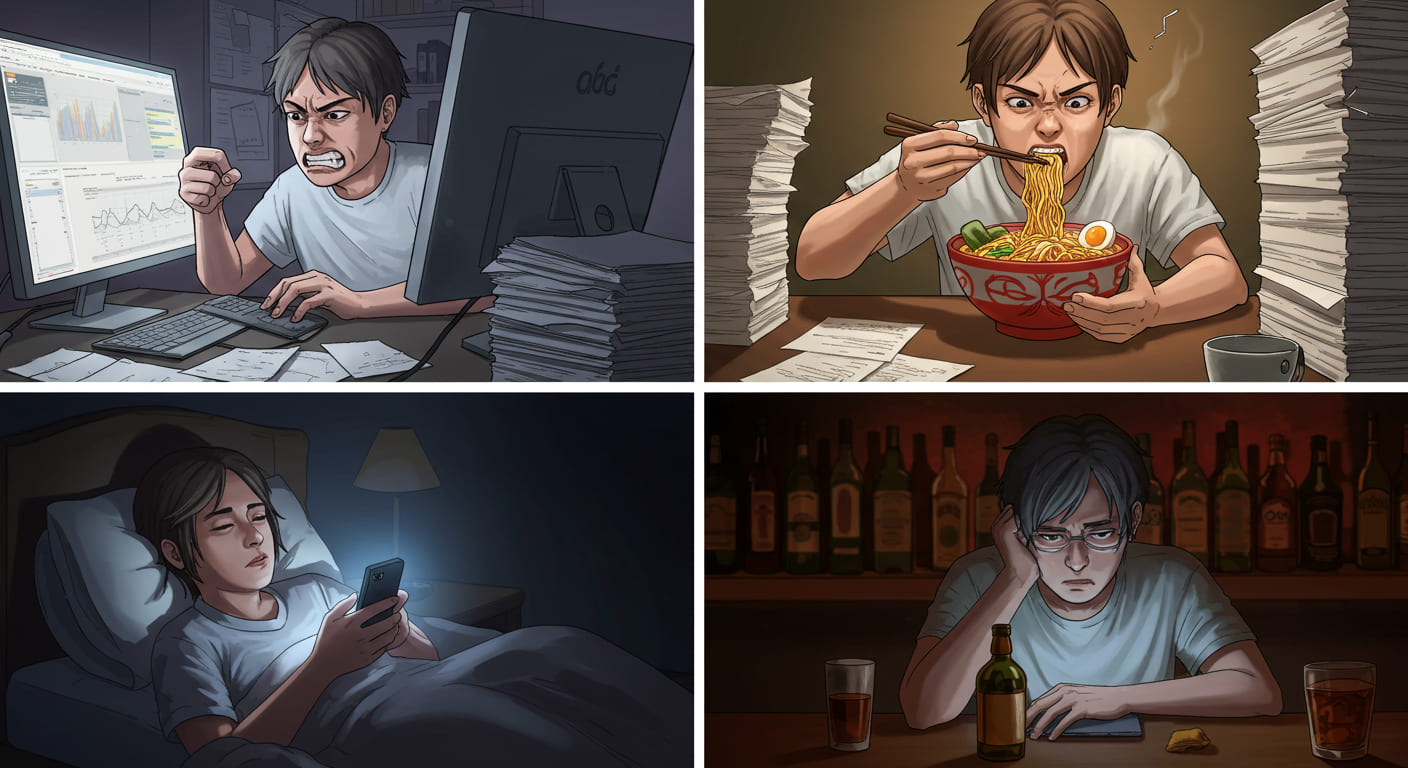 - 과도한 카페인 및 알코올 섭취 - 일시적 자극 후 더 심한 피로 유발