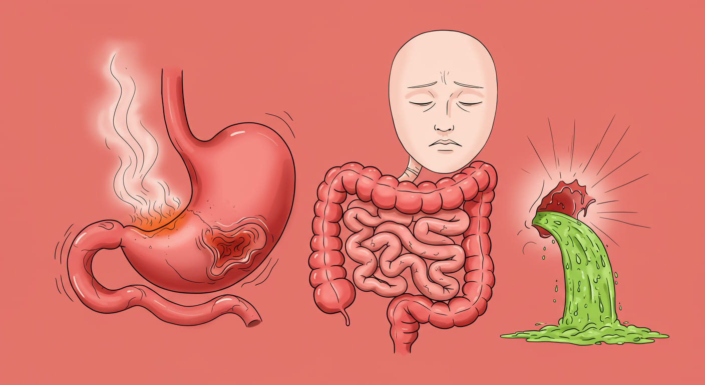 위나 십이지장에 생긴 궤양으로 인해 속쓰림이 나타날 수 있으며, 공복 시 더 심해지는 경향이 있습니다.