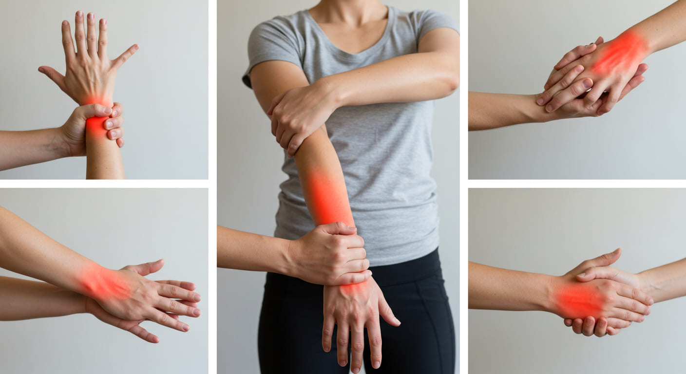 통증이 팔꿈치나 어깨까지 퍼지는 방사통이 발생할 수 있습니다. 이는 신경이 압박되면서 통증이 신경 경로를 따라 전달되기 때문입니다.