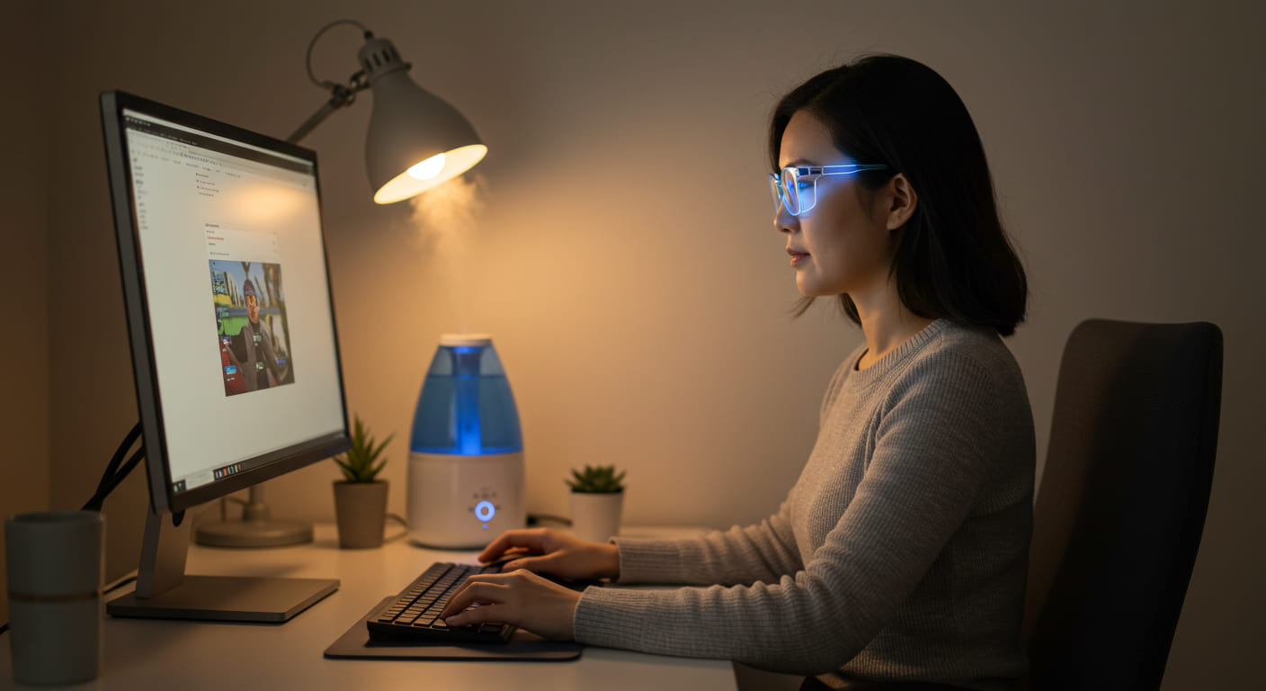 안구건조증은 환경적 요인에 크게 영향을 받습니다. 다음과 같은 생활습관 개선이 필요합니다: