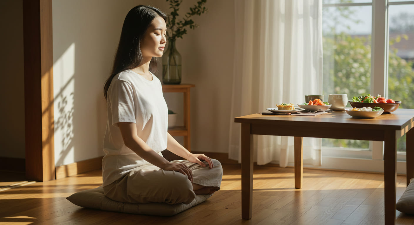 - 식사 명상: 음식을 먹을 때 모든 감각을 동원하여 음식의 맛, 향, 질감에 주의를 기울입니다. 천천히 음식을 씹고 삼키며 현재 순간에 머무릅니다.